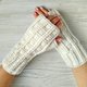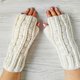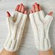 - White fingerless gloves for women. Hand knit to keep your hands warm while allowing your fingers the freedom to do what they need. Consider giving these as a holiday gift to your favorite person. Great for texting, typing or whatever else your fingers need to do! You can wear them in your office if it is cold.