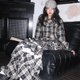 - 【複古解構格紋】寬領斜門襟長袖襯衫