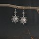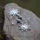 太阳耳环。 带不锈钢挂钩的银色金属太阳耳环。 悬垂的耳环。 巫术首饰。 Inaksh 珠宝。
