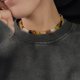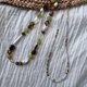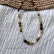 这条项链的色调是大地系:橄榄绿、琥珀棕、奶油白贝、透明石