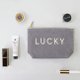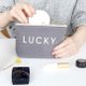 GMZ使用布料制成的收纳万用包,结合了象征好运的LUCKY印刷字母,