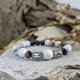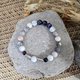 粉紫迷情的祝福,仿佛感受的到爱的双重力量,一半是沉稳,赋予安定的港湾;另一半是甜蜜,让你体验到砰然心跳的悸动。这条手链适合在爱情中追求稳定也追求浪漫的人。