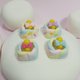 The Little rubber duck with ribbon in Marshmallow inflatable tub. Rubber duck and inflatable tub made by polymer clay. Water part made by UV resin. Led light can pass.