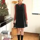 领边和下摆都有黑色花边装饰,整体是有一点A字型设计,拍照的时候,模特是有刘海的,把头发扎起来,穿这件莫名有一种赫本的俏皮优雅味道,推荐搭配打底衫和黑色裤袜来穿,年末的一些派对场合需要这样的小灰裙。