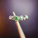 戒指的设计旨在颂扬每一颗宝石的璀璨光芒,戒环上连续排列的闪耀绿色宝石,从各个角度都能捕捉光线,呈现令人屏息的耀眼光彩。半圈的设计带来现代感的细节,无论是与其他戒指叠戴,或是单独作为风格宣言,都极为适宜。