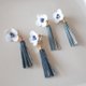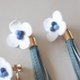 Under the flowers made with polymer clay, the denim tassels are shaking swaying.