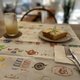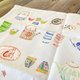 这款茶巾以淡蓝色为底,融合了茶店、古董店常见的传统台湾茶壶、茶杯、碗盘图案,散发中式的典雅风格。