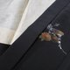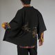 这款独一无二的复古羽织以奢华的黑色为底,饰以精美的金彩手绘细节。设计融合了经典的日本图案——菊花、牡丹和枫叶——象征着吉祥、美丽和守护。
