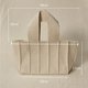 * 基本款且独一无二的手工包 * 材质:100% 纯棉织带 (50mm) * 自然边缘设计 * 尺寸:24cm x 9cm x 17cm,提把高度:16cm * 建议手洗 [BagJi] “Bagji”在韩语中意为“空白纸张”。我们以崭新的视角,重新诠释日常物品的原始意涵。我们制作各式各样的手工艺品与升级再造的创作。