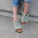 接触脚的鞋垫部分为牛皮材质,能吸湿排汗预防脚臭,鞋面为牛仔布材质,牛仔布的特性就是会因为自己的穿着习惯,跟着有不同的颜色变化,也会越穿越有个人特色,穿久了觉得腻了,甚至能展现您的艺术天分,作刷色、抓破或喷色效果,栽培一双属于自己的牛仔凉鞋吧~