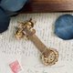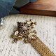 双头鹰图腾的历史渊远流长,最早在公元前 102 年就成为罗马共和国的标志,在欧洲国家经久流传,在俄罗斯、东欧与斯拉夫国家中非常常见。甚至至今都能在俄罗斯、塞尔维亚、和蒙特内哥国的国徽上看到一只头戴皇冠的双头鹰。细细品味这个胸针正面纹路与刻划,双头鹰栩栩如生,垂坠的老鹰图腾也非常生动,从背面观察,金属底座是压制出来后稍经细节处理,再将垂坠的部分简单焊接起来。从风格与做工来看,它应该是欧洲国家的产物,却是从美国收回来的,岁月将它的古铜金打磨的温润有光泽,浓厚的故事感带给了我许多的想像。