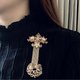 - 细细品味这个胸针正面纹路与刻划,双头鹰栩栩如生,垂坠的老鹰图腾也非常生动,从背面观察,金属底座是压制出来后稍经细节处理,再将垂坠的部分简单焊接起来