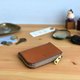制品边缘是采用所谓“切面”加工的制法,切面即为皮革的裁断面,相较于采用“缘返”加工制法,更为耐用。即使皮件边缘劣化,也可视状况进行修补。制作过程中,采消光方式处理皮革的裁断面,雾面边缘呈现美丽的滑顺感。