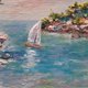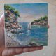 田园诗般的海洋风光:舒适梦幻的海湾,被茂密的夏季植被覆盖的悬崖所保护,一艘帆船从海滩出发。送给您的朋友或家人的精美小礼物。