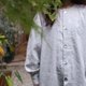 中性圆领拉克兰落肩宽袖衬衫--灰白纱织.棉麻/前长后短
