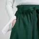 - A字版型、棉质混纺、具备口袋、前腰绑带设计、后腰松紧带、腰间抓褶。