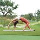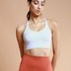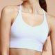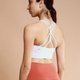 此为宽版下摆的长版运动内衣,两侧腋下包覆,前胸完美V领弧度,背部为asana经典设计米字细绳。