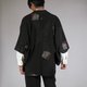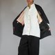 这是一件 20 世纪 80 年代的日本复古羽织,以优雅的黑色为底,饰以精致的编织拼布图案。