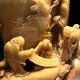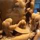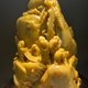 这是一件早期收藏的昌化田黄石雕件,裸重3688公克,高度约20.5厘米。以质地细腻、色泽温润的田黄石雕琢而成,产自浙江昌化地区,是中国传统印石三大名品之一的昌化石系统中极为罕见的田黄类石材,具备极高的文化与收藏价值。昌化石主要产自浙江临安昌化一带,与寿山石、巴林石并列为中国三大印石。昌化石中的田黄石最为珍罕,产量极低,石质细腻紧密、膏润通灵,颜色温雅从淡黄至浓金黄,油性极佳,触感温润如玉。尤其老田黄经岁月包浆后更显古朴庄重,拥有一种内敛而隽永的审美气质。本件即是出自昌化产区老矿之石,保留了古矿田石特有的蜡质光泽与浓厚包浆,从光泽、肌理与颜色变化上均能辨别其年代与矿口来源。雕件整体以“山居高士”为主题,工艺精湛、层次分明,呈现出极强的叙事性与文化寓意。正面可见三位老者围坐于山石之上,神情庄重,正仔细阅读一幅舒展的长卷。此一构图常见于中国传统文人画题材,象征修身养性、诗书传世之意,亦可能取材于《东坡观画》或《三高士论道》一类的典故。三位老人发髻分明,衣褶流畅,线条柔中带刚,展现了雕工者对人物刻划的高度掌握力。尤其其中一人双手持卷,神情专注,与旁边一位侧坐的长者交互神情呼应,宛如真实对话流动,气氛沉静而深邃,完美再现了文人世界的雅集氛围。侧面转至另一侧,可见一位老翁坐于松下,童子侍立其后。此构图寓意“松下问童子,言师采药去”,出自唐代诗人贾岛名句,象征隐逸、清高、不仕之志。童子双手执物,侧身前倾,仿佛正回应老翁的问话。松树枝叶繁茂,层层交叠,与人物之间形成强烈的景深与层次。整体布局错落有致,构图由高至低,由远至近,形成山水间动静交融的艺术境界。人物与景物之间的衔接细腻自然,无论是松叶的细刻、人物的胡发,还是石阶、山洞、屋檐的层叠转折,皆一丝不苟、匠心独运。尤其在细节处处理上,诸如人物衣袂飘动的动态、胡须分束的纹理、松枝高低错落的力度变化,皆显示出雕刻者深厚的功力与丰富的创作经验。这类昌化田黄大型山子雕件,在当代市场上极为罕见,尤其是早期收藏、原矿大料雕刻而成者,更具收藏价值与文化含量。此件雕件不仅在雕工上达到极高水平,更由于其材质优异与主题高雅,使其具备了“石中有画,画中有诗”的文人意境,极具东方哲思与审美高度。从收藏市场角度来看,近年由于田黄石资源日益枯竭,加上传统文人题材逐渐受到藏家青睐,像此类具备大件体量、高品质材质与完整主题雕刻的昌化田黄雕件,未来其收藏与投资潜力亦值得长线关注。此件目前藏于台北“山奇艺术”工作室,属早期入藏之老件,品项完整、保存良好,若您对此件作品有兴趣,欢迎亲临工作室现场鉴赏、交流,诚挚邀请爱石藏家共赏精品之美。