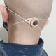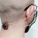 最迷你不影响收纳的方案,以绳结稳稳固定于单边松紧带上,脱下口罩也不易遗失。(使用前请先将单边松紧带穿过小孔,再绕回扣体拉紧固定)
