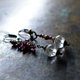 这款不对称耳环由复古极光车制水晶与石榴石串接而成。