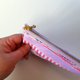 拉链部分以及内衬的布料,都选用了能与整体协调的淡紫色。