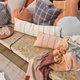 抱枕使用经典条文互补色搭配,触感舒适,融入现代居家装饰及时尚感,适用于卧室及客厅沙发,百搭实用。
