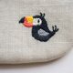 - Wee Pouch for all your daily essentials. Sewn from linen and cotton fabrics, with a hand-embroidered toucan motif.