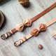 * Handmade leather collar for medium size cats, puppies & small breed dogs. (additional hand sew leather bow tie & custom name tag & phone number upon choice of order)