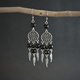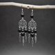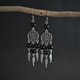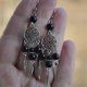 捕梦网黑色缟玛瑙耳环,Chandelier boho 抗过敏耳环。民族吉普赛长耳环。