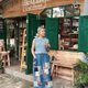 采用龟甲纹理缇花布料制成的气球裙,以石洗工艺进行天然染色,并缀以手工缝制的花叶图案,裙摆处设有松紧设计。