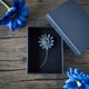 这是一款深邃的烟熏海军蓝 गर्bera 雏菊胸针。