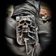 本款重机腰挂包以厚实植鞣牛皮手工制作,搭配立体骷髅、子弹、护身图腾等金属配件,风格硬派,适合重机骑士、摇滚乐迷与喜欢暗黑元素的你。