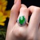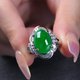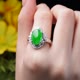 【名称】冰种正阳绿翡翠蛋面戒指 PT900白金钻石