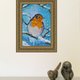 A painting with a winter landscape and robin is a finished work, sold without a frame.