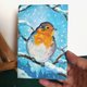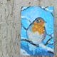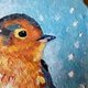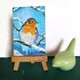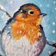 - Robin painting is painted with oil paints on the panel. The picture with a bird on a branch and snowfall has a size of 6 x 4 inches or 15 x 10 cm. Winter landscape with robin bird is sold unframed.