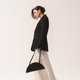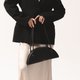 别致的弯月造型,以触感细腻的黑色皮革与极简设计,散发当代时尚气息。尽管尺寸精巧,内部空间却能容纳您的日常必需品,而加长的肩带则确保了舒适的携背体验。顶部以金色金属拉链开合,安全地收纳所有物品,内袋则能妥善放置小物。