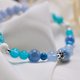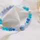 运用不同浅蓝色调水晶,呈现有冷静、从容的感觉,让人提升自信并且更容易的表达自我。蓝色对应于能量光谱中的喉轮,对应的是沟通和表达能力,具有缓解喉咙不适、以及能明确表达自我的作用,适合优雅、清新的您。