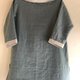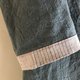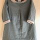 主体:麻100%(拉米亚麻) 锈浅葱色 领口和袖口:手工编织麻100%(原创条纹)