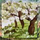 苹果树原创艺术苹果树开花艺术盛开的果园油画