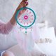 - This colorful dream catcher consists of wooden ring wrapped with yarn. Turquoise, mint, and pink colors make it perfect to be hung in any room of your home, espessially it will looks great as wall hanging bedroom decor or nursery wall hangings or decoration of girly kids room. • Diameter of ring - approx. 6" (15 cm) • Total Length - 15,5'' (40 cm)