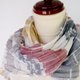 此款极细苎麻纱线的粗细仅为手织常用亚麻纱线的一半,其特点是纤维毛羽较少且带有光泽。经纱总数达 480 支,织造密度细致,质感极其柔韧。亚麻围巾的吸水性、吸湿性和速干性均优于棉质,因此不会黏腻于肌肤,触感清爽,适合从春季到秋季,一年三季皆可使用。