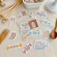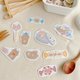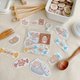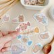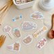 一包里面有8张可爱的小贴纸,适合用来布置手帐拼贴,或是贴在铅笔盒、收纳盒也很可爱喔! 使用透明拉环夹链袋包装,可重复利用,用来装手帐素材或发圈之类的很方便! 尺寸:单颗贴纸约4x3厘米,一包8张贴纸,外包装10x10厘米 材质:雾面贴纸,防泼水(不完全防水,表面为雾膜防泼水,底下还是铜版贴纸,无法长时间浸泡在水里喔!) 奶油鼠cream mouse 爱吃奶油的小胖鼠,大部分时间是趴着,偶尔起来伸伸懒腰~ instagram:cream.mouse
