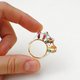 手工制作的金镀金黄铜戒指,透明树脂中封有手绘小人。定制商品,每件都是独一无二的,可自选人物颜色与戒围。
