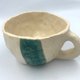 尺寸:8.8 x 7.5 x 4.7 cm。 使用台湾白陶土、美国Amaco釉药。 外侧绘有蓝绿色条纹,再上透明釉。 圆胖造型,把手小巧好拿,适合喝美式咖啡、单品咖啡。 背后有刻上“扭扭陶”字样。 使用回收再利用之包材。