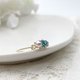采用日本 Akoya 珍珠和瑞士蓝托帕石制成的直立指甲式钢丝戒指。