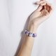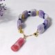 **1.图上紫玉晶宽约18.5mm、厚6.8mm,蓝晶石约4.5mm,玫瑰石柱高约23mm、宽9.7mm,整体手围约14.5cm。**