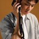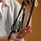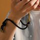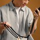 石墨黑尼龙绳与皮革、黄铜拼接而成的手机背带,现代感的配色呈现出低调的中性风格