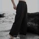 宽管裤,采用尼龙材质,基本款设计,高腰。