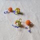 以棉、麻布料手缝成片片花瓣,组合的另一边,是异于柔软布料、颗颗晶透琉璃珠缝制的肥硕花苞,饱满的花苞也看似果实,拣一对心灵相通的花菓,展现最缤纷美丽的样貌 !